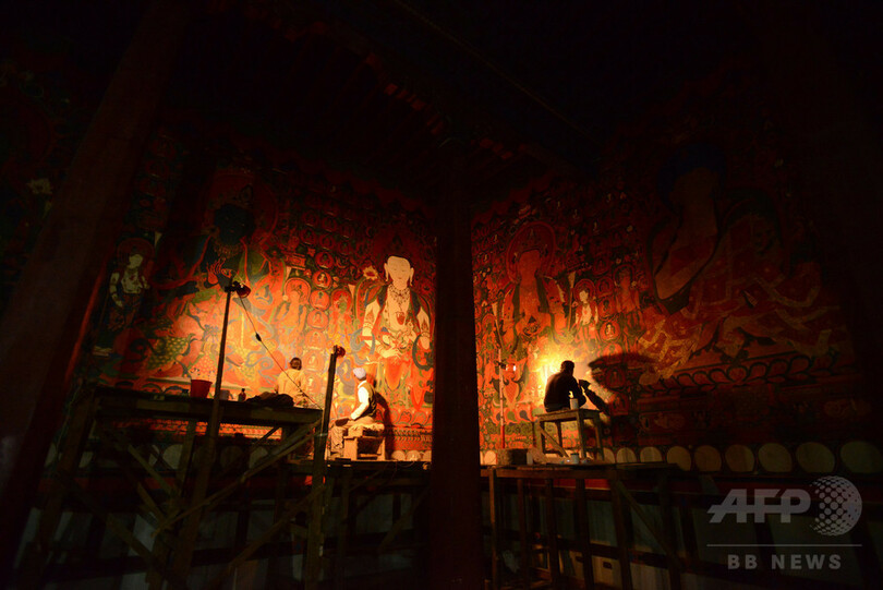 【11月29日 AFP】ネパールの人里離れたアッパームスタン(Upper Mustang)にある古い僧院の奥深くで、神聖な壁画を修復し、伝統的なチベット仏教文化を保存する闘いが本格化している。