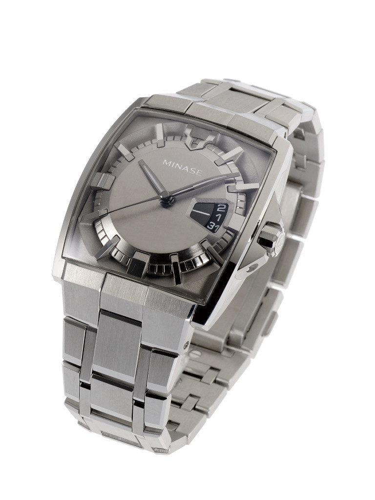 またブレスレットには、“100年後も語れる モノ創り”の信念を貫く“MORE構造”を採用。これは伝統工芸である組木細工にヒントを得た「ミナセ」オリジナル技術で、すべての外装部品が分解できるため、傷んだ部品のみ修理・交換することができ、永続的なアフターメンテナンスを可能にする。さらに一般的なベルトに用いられる駒側面のピン穴がないなどデザインも無駄がなく、タイムレスなウオッチとなっている。