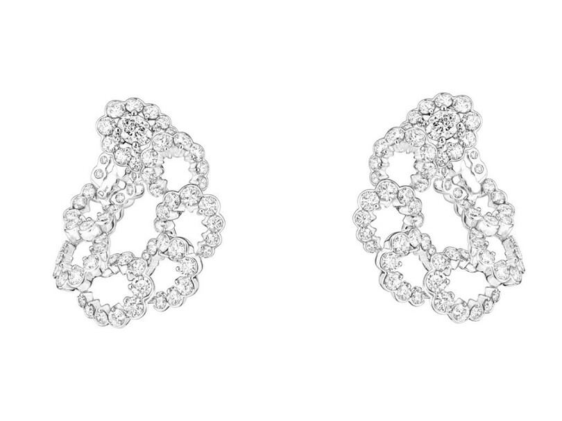 新作は、1948年に誕生したバックにボリュームを持たせた千鳥格子の「ココット」ドレスをインスピレーションに、ホワイトゴールドとダイヤモンドのアシンメトリーなリングとネックレスが登場。また、「ミリュ ドゥ シェクル」ラインの、布地に宿る幾何学を基にしたデザインに着想を得て、ホワイトゴールドとダイヤモンドのネックレスやピアス2種、ホワイトゴールドにダイヤモンドおよびピンクゴールドにダイヤモンド(またはダイヤモンドなし)のリング3種を新たに加えた。