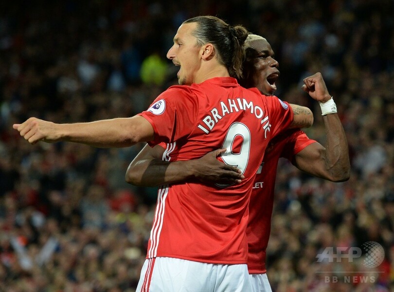 ユナイテッドは前半36分にズラタン・イブラヒモビッチ(Zlatan Ibrahimovic)が先制点を決めると、後半7分にPKから再びイブラヒモビッチが得点した。(c)AFP