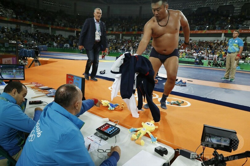 【8月22日 AFP】21日に行われたリオデジャネイロ五輪、レスリング男子フリースタイル65キロ級の3位決定戦で、判定に納得のいかないモンゴルのコーチが服を脱いでパンツ一丁になるという奇妙な方法で抗議する場面があった。