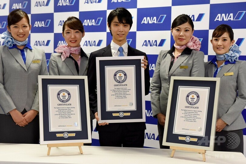【8月22日 AFP】ソチ冬季五輪の男子フィギュアスケートで金メダルを獲得した羽生結弦(Yuzuru Hanyu)が持つ3つの記録がギネス世界記録(Guinness World Records)に認定され、22日に東京都内で認定証の授与式が行われた。