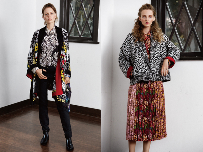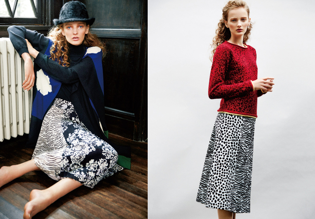 そして多彩な色や柄を使った独特のテイストについては「日本の着物の配色が参考になる」と意外なヒントを明かす。「西洋にはない、着物と帯の色合わせなどが大好き。パリに移って52年になるが、日本に帰ってくるたびに日本文化を再発見する」。旅好きでもある髙田はそういった経験や感動をインスピレーションにしている。今回のコレクションではとくに赤やオレンジの差し色や、フラワー×アニマル柄の大胆なミックス&マッチが新鮮だ。