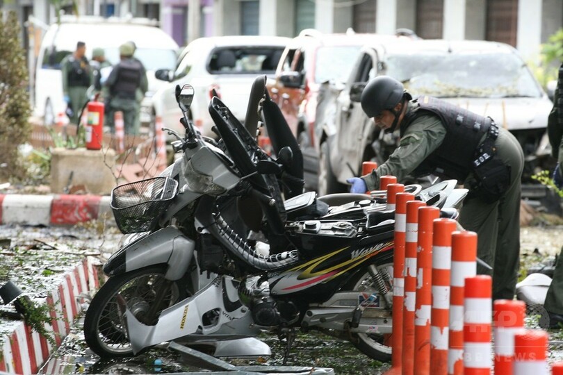 【8月24日 AFP】(写真追加)タイ南部パタニ(Pattani)県郊外のホテル付近で23日夜、大型の自動車爆弾が爆発し、地元警察によると1人が死亡、30人余りが負傷した。うち数人が重体という。一帯は反政府勢力の活動が活発な場所として知られる。