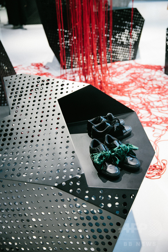 先日オープンした青山店とはまた違ったコンセプトで作り上げられた同店。建築家の高濱史子(Fumiko Takahama)が、日本の伝統的な「枯山水」をモダンな様式で表現した。1700スクエアフィートにも及ぶこの広大な空間はパンチングメタルのシートによりデコレーションされ、岩々のようなオブジェはディスプレイのほかに椅子としても機能する。さらにフューチャリスティックな試着室もこのショップの魅力的な特徴だ。