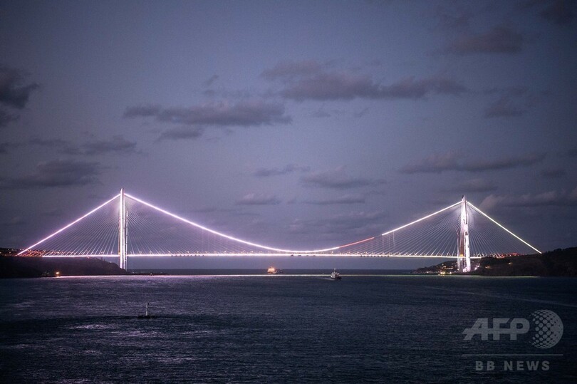 【8月27日 AFP】トルコの最大都市イスタンブール(Istanbul)で26日、欧州とアジアを隔てるボスポラス(Bosphorus)海峡に架かる3本目の橋「ヤウズ・スルタン・セリム橋(Yavuz Sultan Selim Bridge)」の開通式が行われた。式典にはレジェプ・タイップ・エルドアン (Recep Tayyip Erdogan)大統領も出席した。エルドアン大統領が夢見る「新しいトルコ」の象徴的存在であるこの橋は、長さ1408メートル、幅58.5メートルの世界最大級のつり橋で、橋脚間の距離も世界最長とされる。(c)AFP