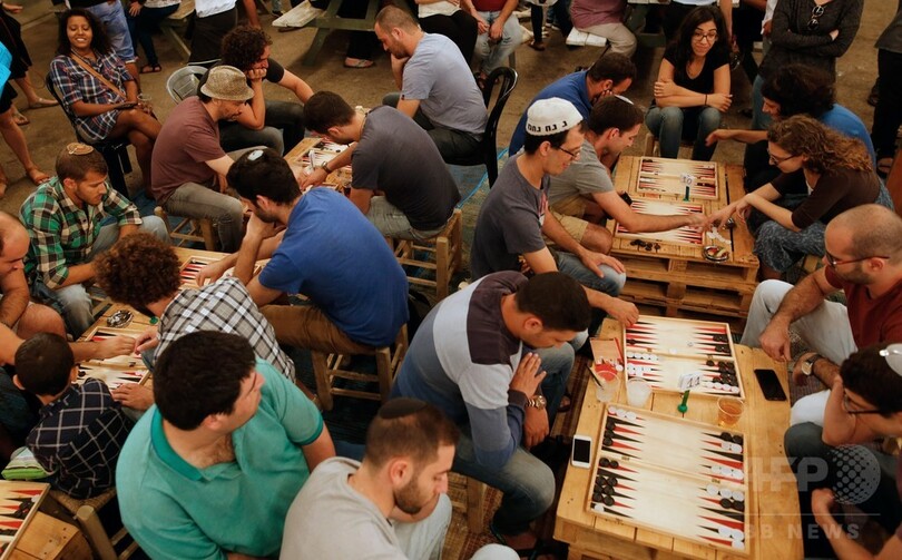 エルサレムで8月31日、中東で人気の高いボードゲーム「バックギャモン」の大会が開催され、イスラエル人とパレスチナ人数十人が会場となった歴史的建造物の旧駅舎に集まった。会場には、「ヤムルカ」と呼ばれる小さな帽子やスカーフなどを身に着けている人もいた。