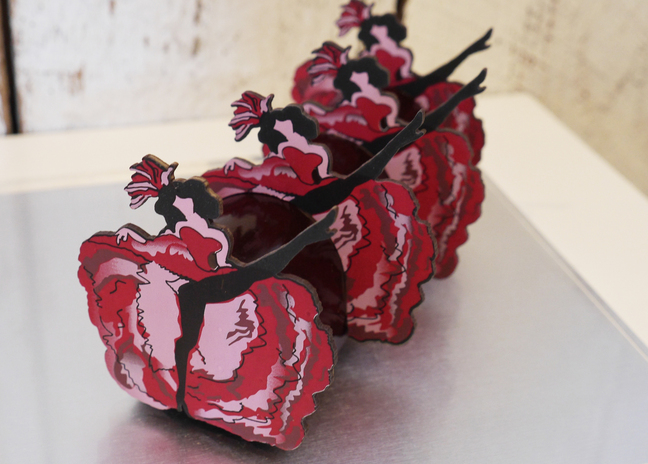 フランスのショーダンス「カンカン」をモチーフに、生きる喜びを表現した「ビュッシュ カンカン」。女性ダンサーを表現したショコラは、そのロングスカートとペチコートが躍動感にあふれ、今にも動きだしそう! 口にいれた瞬間に程よい酸っぱさが広がるグリオットチェリーの果汁とジュレがアクセントに。