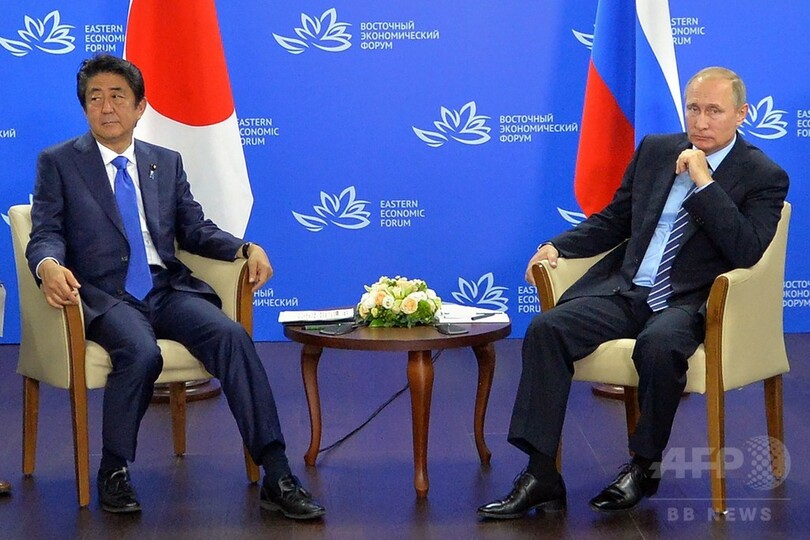 【9月3日 AFP】安倍晋三(Shinzo Abe)首相とロシアのウラジーミル・プーチン(Vladimir Putin)大統領は2日、ロシア極東のウラジオストク(Vladivostok)で開催された「東方経済フォーラム」出席に合わせて会談し、両国間の貿易促進と長引く北方領土問題の前進を図って意見を交わした。しかし、領土問題で大きな進展には至らなかった。