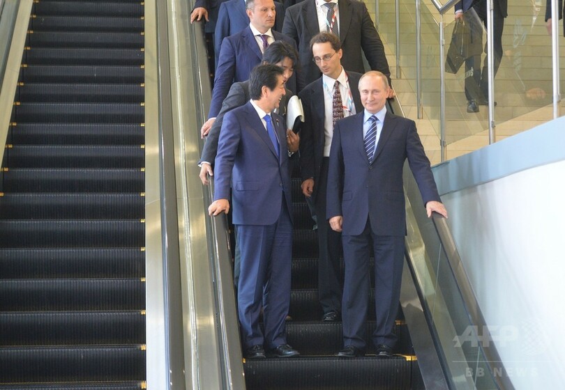 【9月3日 AFP】安倍晋三(Shinzo Abe)首相とロシアのウラジーミル・プーチン(Vladimir Putin)大統領は2日、ロシア極東のウラジオストク(Vladivostok)で開催された「東方経済フォーラム」出席に合わせて会談し、両国間の貿易促進と長引く北方領土問題の前進を図って意見を交わした。しかし、領土問題で大きな進展には至らなかった。