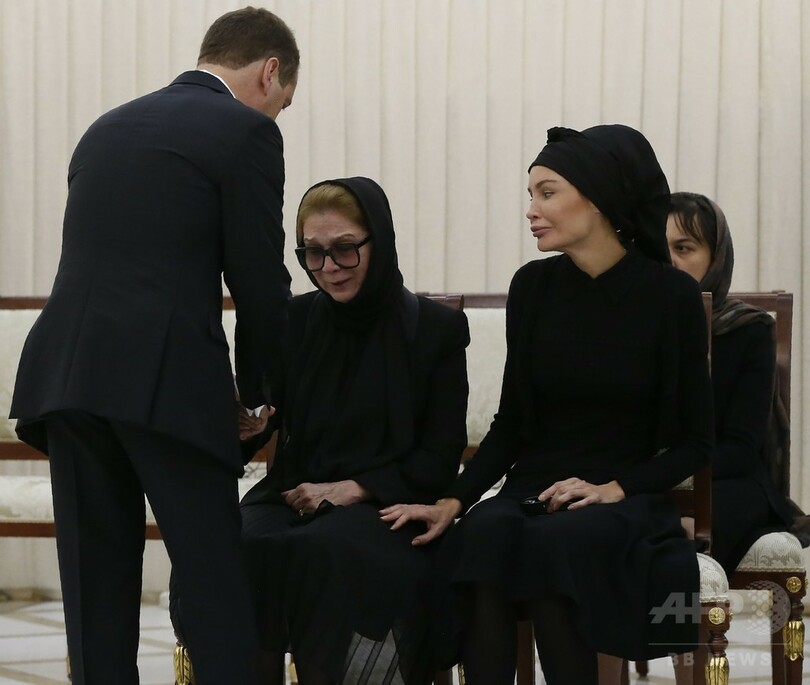 国営テレビの映像には、そびえ立つ神学校に囲まれた広場で、白いシャツを着た男性たちに運ばれるカリモフ氏のひつぎを見守る隣国アフガニスタンのアシュラフ・ガニ(Ashraf Ghani)大統領ら大勢の参列者が映っていた。