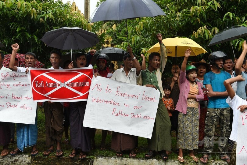 【9月6日 AFP】ミャンマー西部ラカイン(Rakhine)州で6日、イスラム教徒の少数民族ロヒンギャ(Rohingya)人数万人に避難を強いた宗教紛争の現状を調査に訪れた前国連(UN)事務総長のコフィ・アナン(Kofi Annan)氏に対して、強硬派の仏教徒ら数百人が罵声やブーイングを浴びせた。