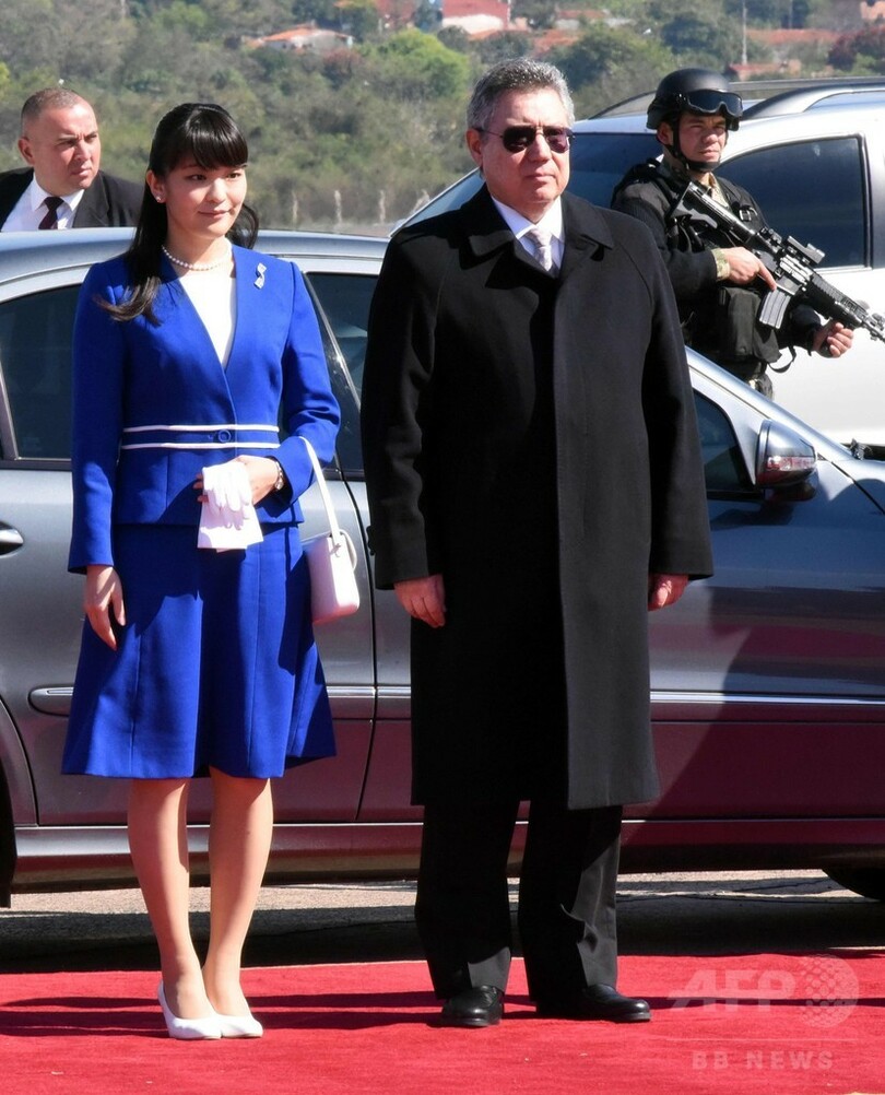 【9月8日 AFP】秋篠宮(Prince Akishino)ご夫妻の長女眞子さま(Princess Mako)は7日、南米パラグアイの首都アスンシオン(Asuncion)郊外ルケ(Luque)にあるシルビオ・ペティロシ(Silvio Pettirossi)国際空港に到着し、同国への公式訪問を開始された。空港ではオスカル・カベジョ・サルビ(Oscar Cabello Sarubi)副外相が出迎えた。(c)AFP