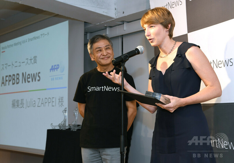 スマートニュース・アワードは、今年で2回目。そのほか、スマートニュース・ダイバーシティ賞が東洋経済オンライン(TOYOKEIZAI ONLINE)に、スマートニュース・チャンネルプラス賞がアットダイム(@DIME)に贈られた。(c)AFPBB News