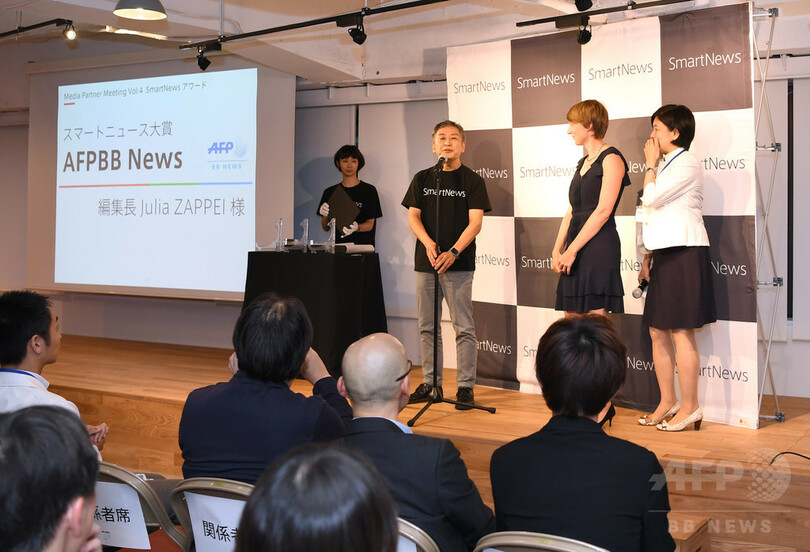 スマートニュース・アワードは、今年で2回目。そのほか、スマートニュース・ダイバーシティ賞が東洋経済オンライン(TOYOKEIZAI ONLINE)に、スマートニュース・チャンネルプラス賞がアットダイム(@DIME)に贈られた。(c)AFPBB News