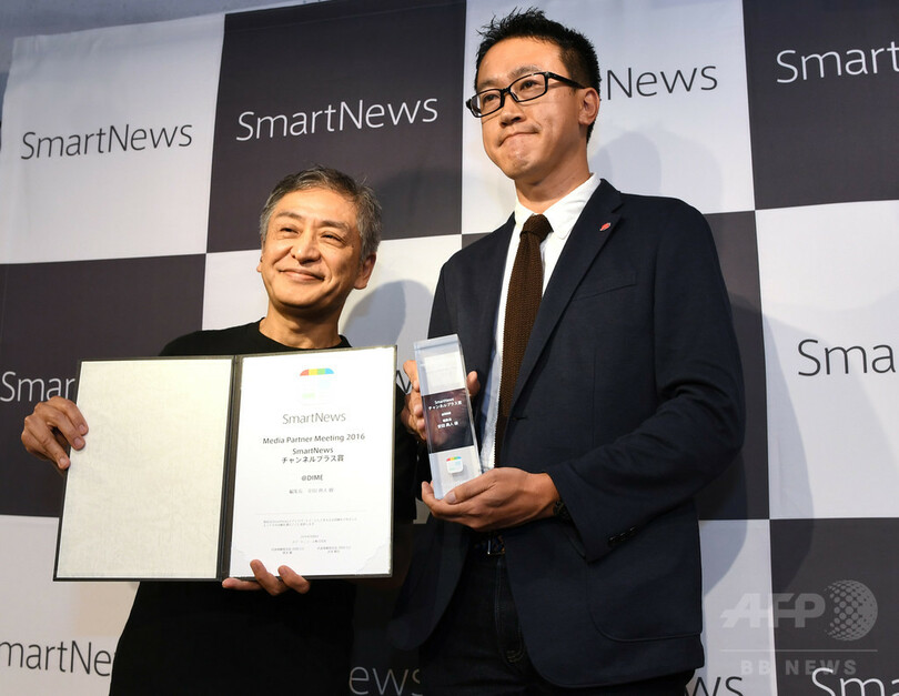 スマートニュース・アワードは、今年で2回目。そのほか、スマートニュース・ダイバーシティ賞が東洋経済オンライン(TOYOKEIZAI ONLINE)に、スマートニュース・チャンネルプラス賞がアットダイム(@DIME)に贈られた。(c)AFPBB News
