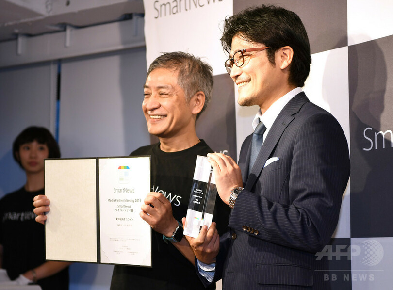 スマートニュース・アワードは、今年で2回目。そのほか、スマートニュース・ダイバーシティ賞が東洋経済オンライン(TOYOKEIZAI ONLINE)に、スマートニュース・チャンネルプラス賞がアットダイム(@DIME)に贈られた。(c)AFPBB News