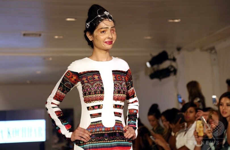 【9月9日 AFP】義理の兄とその友人たちに押し倒され、酸を浴びせられたために片目を失い、顔に大きな傷を受けたインド人女性が8日、米ニューヨーク(New York)で開催されているニューヨーク・ファッションウイーク(New York Fashion Week)のランウェイに登場し、大きな歓声を受けた。