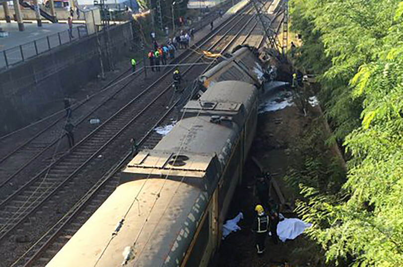 スペインでは2013年、ガリシア自治州のサンティアゴ・デ・コンポステーラ(Santiago de Compostela)郊外で旅客列車が脱線してコンクリートの壁に衝突し、約80人が死亡、144人が負傷する史上最悪規模の事故が起きた。(c)AFP