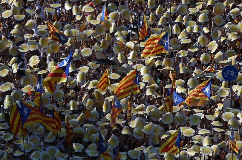 この日は、1714年にスペイン王フェリペ5世(Philip V)が州都バルセロナ(Barcelona)を征服した「カタルーニャの日」(ラ・ディアダ、La Diada)に当たる。デモはバルセロナを含む5都市で開かれ、参加者たちは明るい日差しの中、赤と黄色のしま模様のカタルーニャの州旗を掲げ、カタルーニャに暮らす750万人の人々は独立する準備ができていると声を上げた。