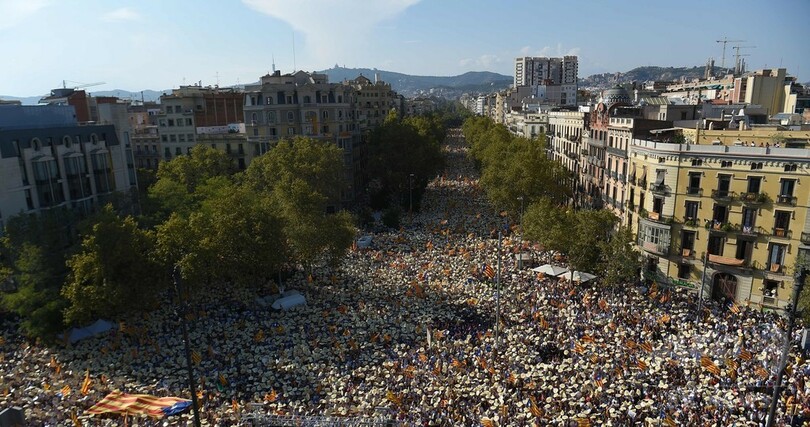 この日は、1714年にスペイン王フェリペ5世(Philip V)が州都バルセロナ(Barcelona)を征服した「カタルーニャの日」(ラ・ディアダ、La Diada)に当たる。デモはバルセロナを含む5都市で開かれ、参加者たちは明るい日差しの中、赤と黄色のしま模様のカタルーニャの州旗を掲げ、カタルーニャに暮らす750万人の人々は独立する準備ができていると声を上げた。