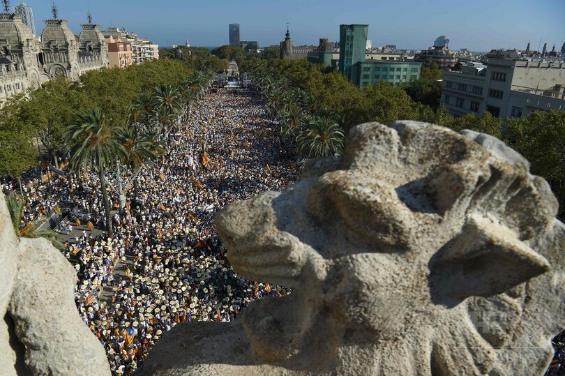 この日は、1714年にスペイン王フェリペ5世(Philip V)が州都バルセロナ(Barcelona)を征服した「カタルーニャの日」(ラ・ディアダ、La Diada)に当たる。デモはバルセロナを含む5都市で開かれ、参加者たちは明るい日差しの中、赤と黄色のしま模様のカタルーニャの州旗を掲げ、カタルーニャに暮らす750万人の人々は独立する準備ができていると声を上げた。