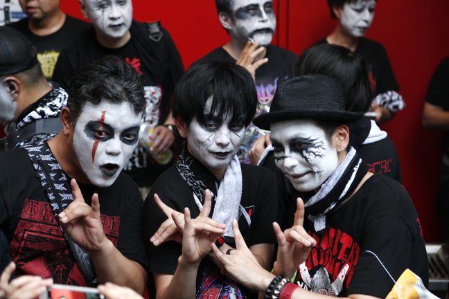 【9月12日 AFPBB News】8月18日、東京・お台場のライブハウス「ゼップトーキョー(Zepp Tokyo)」周辺は、異様な熱気に包まれていた。集ったのは、顔に白塗りを施した老若男女約1000人。目的は、日本の女性3人組メタルダンスユニット「ベビーメタル(BABYMETAL)」の白塗り限定ライブ、通称“白ミサ”だ。