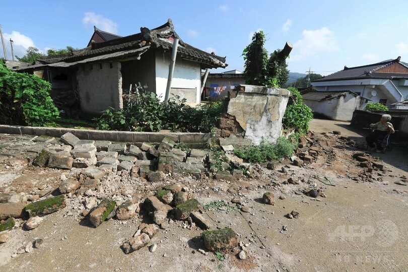 【9月13日 AFP】(写真追加)韓国気象庁(KMA)は同国南部で12日夜、「観測史上最大」のマグニチュード(M)5.8の地震が発生したと発表した。
