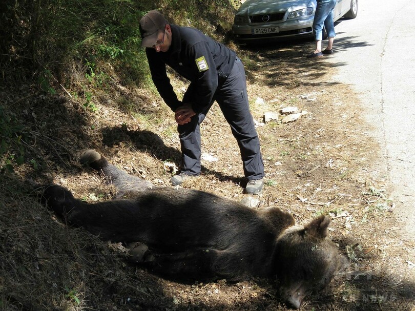 地元警察の報道官によると、観光客らが体重105キロ前後の雄のヒグマの死骸を発見したのは9日、スペイン北部アストゥリアス(Asturias)自治州のムニエジョス自然保護区(Muniellos Nature Reserve)の入り口付近だという。