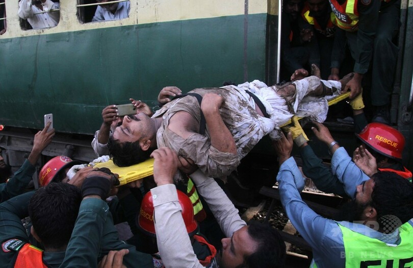 地元当局などによると、事故が起きたのは現地時間午前2時半(日本時間同午前6時半)ごろ。線路上を横断していた男性をはねたため停車していた貨物列車に、カラチ(Karachi)行きの急行列車が突っ込んだ。