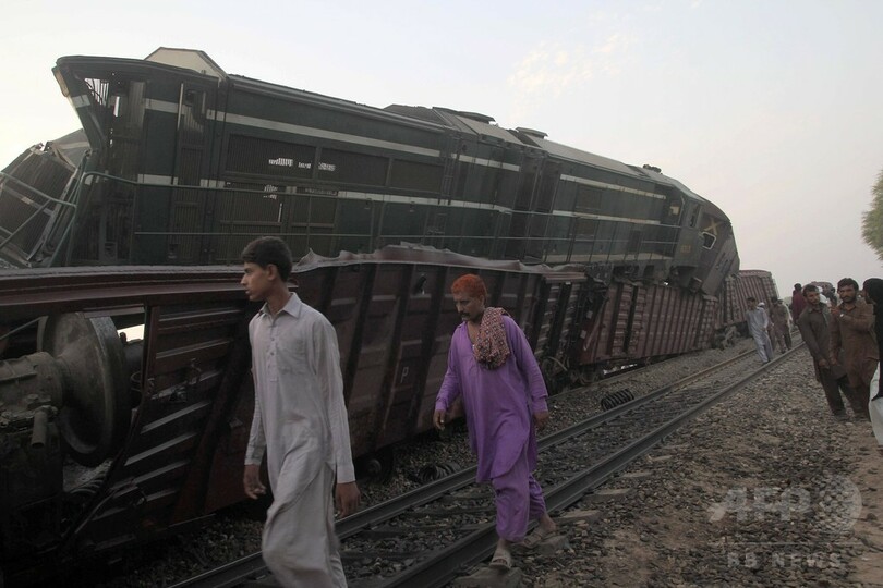 地元当局などによると、事故が起きたのは現地時間午前2時半(日本時間同午前6時半)ごろ。線路上を横断していた男性をはねたため停車していた貨物列車に、カラチ(Karachi)行きの急行列車が突っ込んだ。