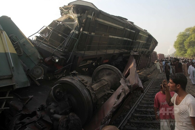 地元当局などによると、事故が起きたのは現地時間午前2時半(日本時間同午前6時半)ごろ。線路上を横断していた男性をはねたため停車していた貨物列車に、カラチ(Karachi)行きの急行列車が突っ込んだ。
