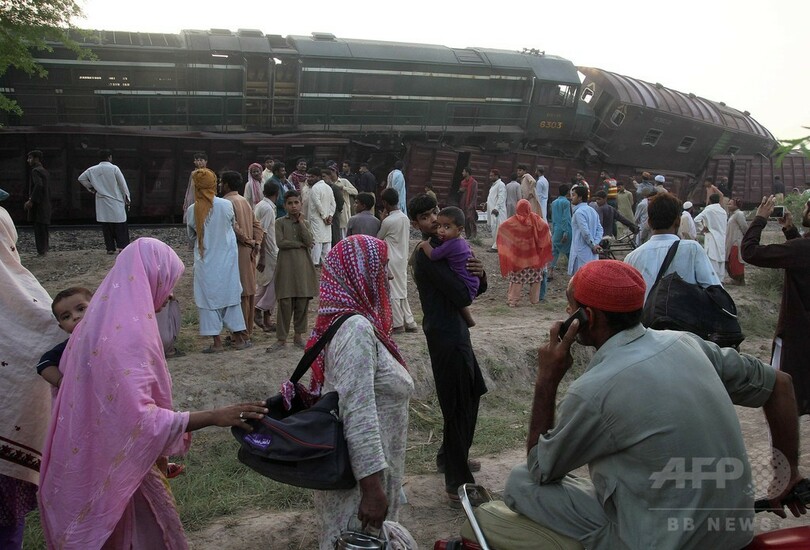 地元当局などによると、事故が起きたのは現地時間午前2時半(日本時間同午前6時半)ごろ。線路上を横断していた男性をはねたため停車していた貨物列車に、カラチ(Karachi)行きの急行列車が突っ込んだ。
