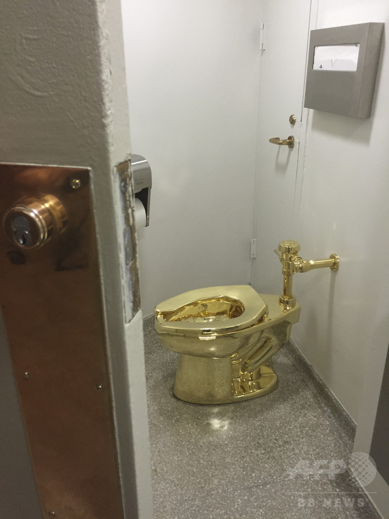【9月16日 AFP】米ニューヨーク(New York)のグッゲンハイム美術館(Guggenheim Museum)に展示されている、実際に使用可能な純金製の便器が、16日から一般の来場客の利用が開放される。これはイタリア人アーティストのマウリツィオ・カテラン(Maurizio Cattelan)氏による作品で、個室前には作品を守るために警備員が常駐する。