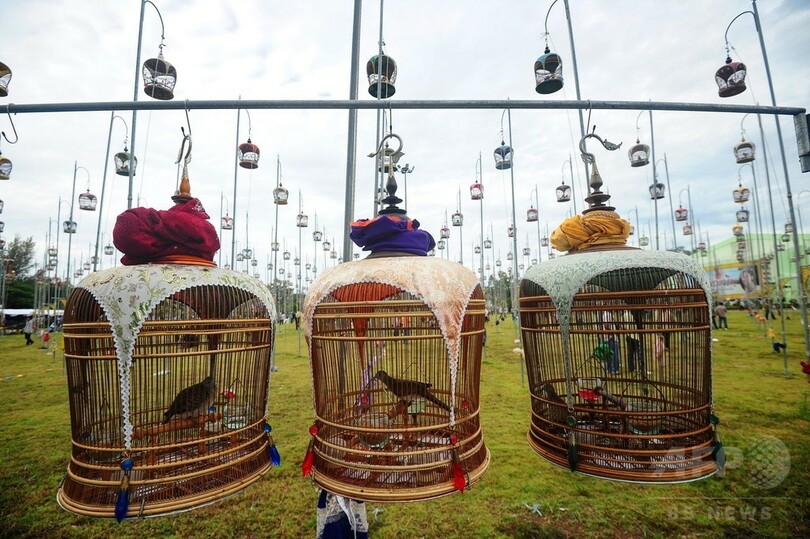 【9月21日 AFP】タイ南部ナラティワット(Narathiwat)県で20日、毎年恒例の鳥のさえずりコンテストが開催され、自国タイをはじめマレーシアやシンガポールから1000羽を超える鳥が参加した。(c)AFP
