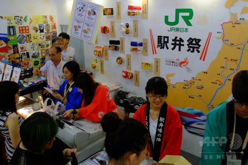 北部の海辺の村、福隆(Fulong)で便当店を営む70歳の男性は、台北(Taipei)で開催された便当を特集した食品見本市「2016台湾美食展(Taiwan Culinary Exhibition)」に参加した。男性はAFPに対し、2006年にトンネルが開通して以来、車での移動が容易になったことで、地元の駅に止まる列車が年々減り、売り上げが落ちてきていると語った。それでも毎日1000個を売り上げており、ひいき客がついている店を続けるつもりだと語っている。(c)AFP/Michelle YUN