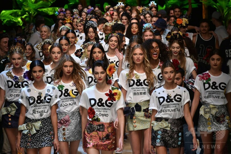 25日には、ステファノ・ガッバーナ(Stefano Gabbana)とドメニコ・ドルチェ(Domenico Dolce)が手がける「ドルチェ&ガッバーナ(Dolce & Gabbana)」が新作を発表した。(c)AFP