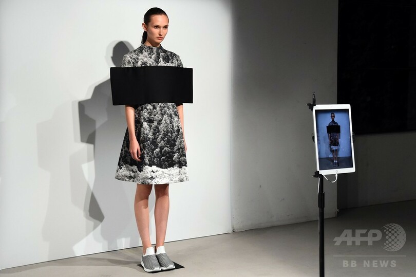 27日には、森永邦彦(Kunihiko Morinaga)が手がける「アンリアレイジ(ANREALAGE)」が新作を発表した。(c)AFP