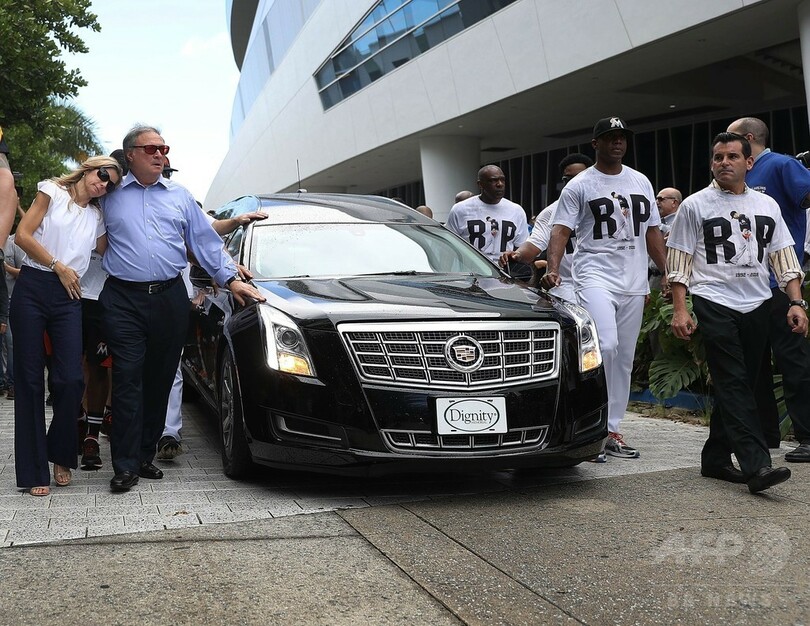 【9月29日 AFP】米大リーグ(MLB)、マイアミ・マーリンズ(Miami Marlins)の所属選手は28日、ボート事故で亡くなったキューバ出身のホセ・フェルナンデス(Jose Fernandez)投手の追悼式で最後の別れを告げた。