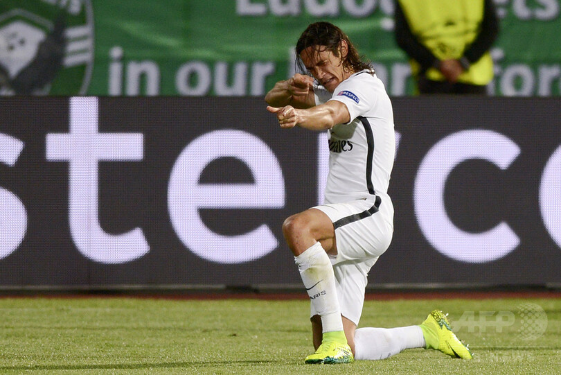するとPSGは、後半11分と15分にエディンソン・カヴァーニ(Edinson Cavani)が立て続けに得点を挙げ、見事な逆転勝利を飾った。ルドゴレツはカヴァーニの1点目の後にPKのチャンスを手にしたが、コスミン・モツィ(Cosmin Moti)がこれを決めることができなかった。(c)AFP