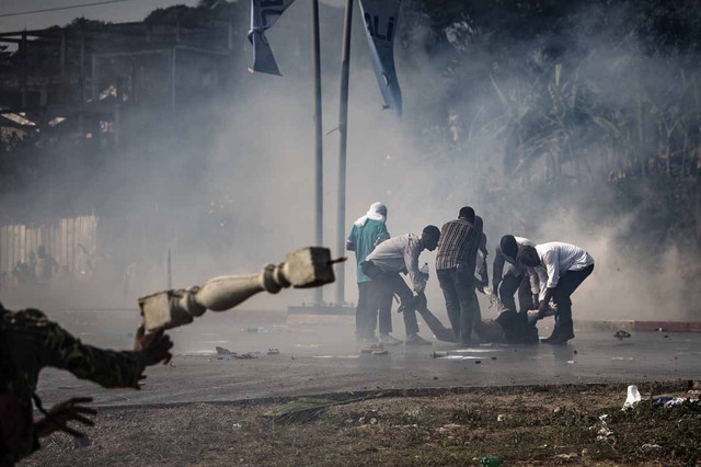 ガボンで驚いたのは、治安当局が気前よく取材許可を出してくれたことだ。取材がどこまで許されるかは、その国の民主主義の度合いを測るバロメーターになる。私は独りだったし、その気になればごく簡単に追い払えたはずだ。だが実際は、暴動の様子をかなり自由に取材することができた。