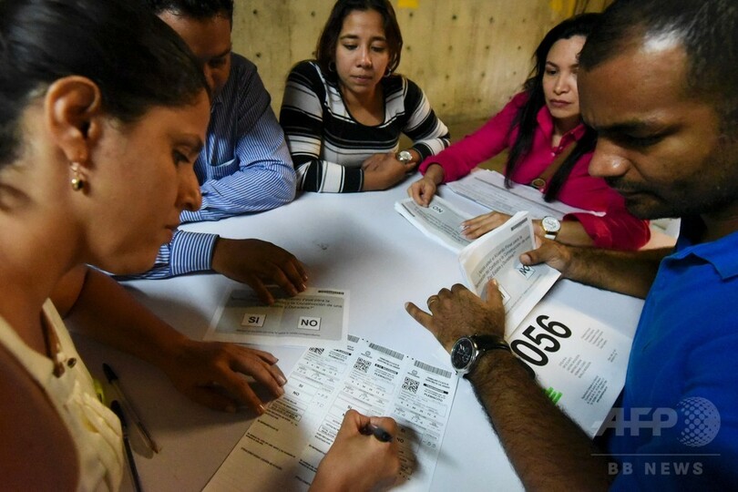 【10月3日 AFP】(更新、写真追加)コロンビア政府と左翼ゲリラ組織「コロンビア革命軍(FARC)」との和平合意の是非を問う国民投票が2日行われ、即日開票の結果、反対が賛成を小差で上回り、合意は承認されなかった。52年間に及ぶ武力紛争に終止符を打つはずの歴史的合意に有権者がノーを突き付けた形だ。フアン・マヌエル・サントス(Juan Manuel Santos)大統領は引き続き紛争終結に取り組む考えを示した。