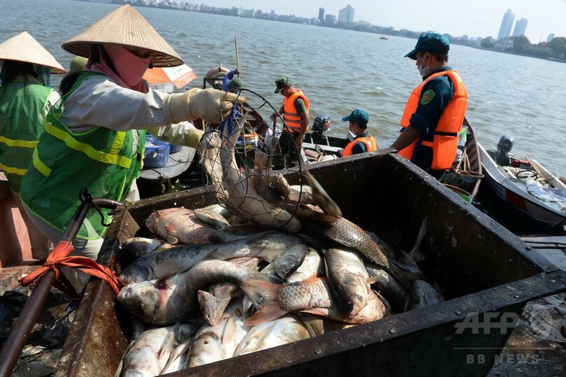 ニュース 社会 ベトナム・ハノイ最大の湖で魚が大量死、水質汚染か 2016年10月3日 17:22 発信地:ハノイ/ベトナム [ アジア・オセアニア ベトナム ] このニュースをシェア ‹ › ❮ 5/16 ❯ ベトナム・ハノイ最大の湖、タイ湖(西湖)から引き上げられた魚の死骸を回収する環境当局の作業員(2016年10月3日撮影)。(c)AFP/HOANG DINH NAM 画像作成中 ! 【10月3日 AFP】ベトナムの首都ハノイ最大の湖であるタイ(Ho Tay)湖(西湖、West Lake)で先週末、大量の魚の死骸が打ち上げられているのが見つかった。地元メディアは、湖の深刻な水質汚染が原因と報じている。(c)AFP 社会 一覧へ> メディア・報道関係・法人の方向け 写真・動画 購入のお問合せ>