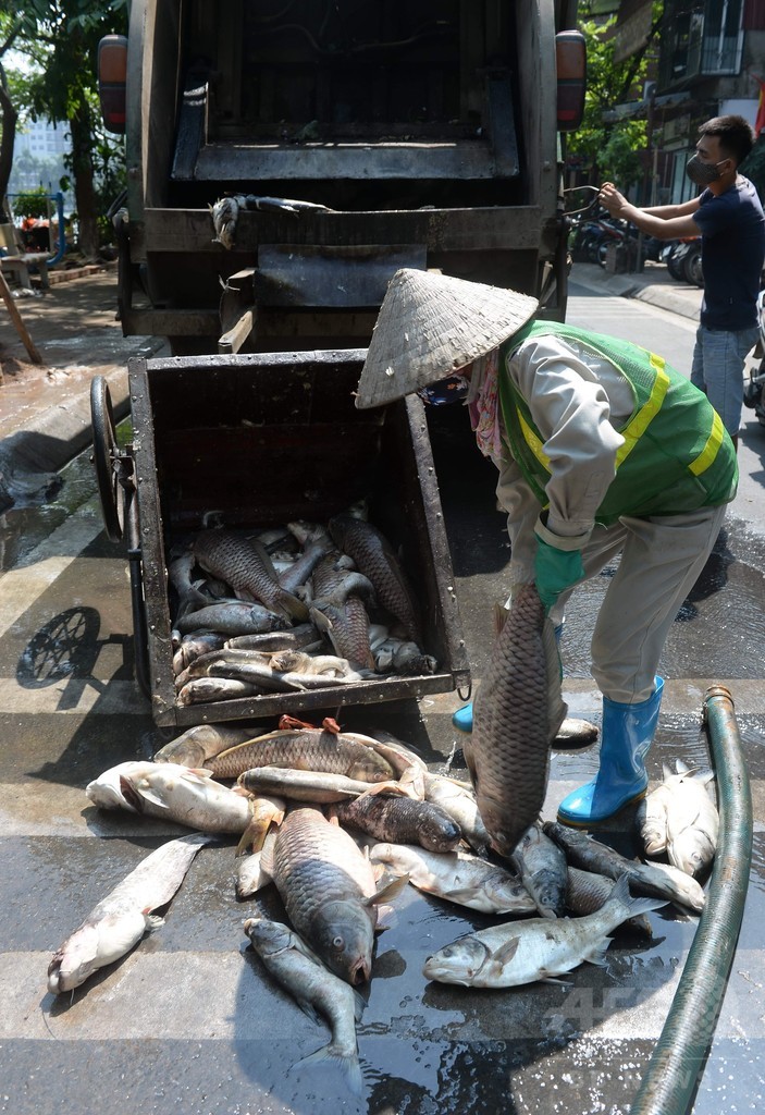 ニュース 社会 ベトナム・ハノイ最大の湖で魚が大量死、水質汚染か 2016年10月3日 17:22 発信地:ハノイ/ベトナム [ アジア・オセアニア ベトナム ] このニュースをシェア ‹ › ❮ 13/16 ❯ ベトナム・ハノイ最大の湖、タイ湖(西湖)から引き上げられた魚の死骸を回収する環境当局の作業員(2016年10月3日撮影)。(c)AFP/HOANG DINH NAM 画像作成中 ! 【10月3日 AFP】ベトナムの首都ハノイ最大の湖であるタイ(Ho Tay)湖(西湖、West Lake)で先週末、大量の魚の死骸が打ち上げられているのが見つかった。地元メディアは、湖の深刻な水質汚染が原因と報じている。(c)AFP 社会 一覧へ> メディア・報道関係・法人の方向け 写真・動画 購入のお問合せ>