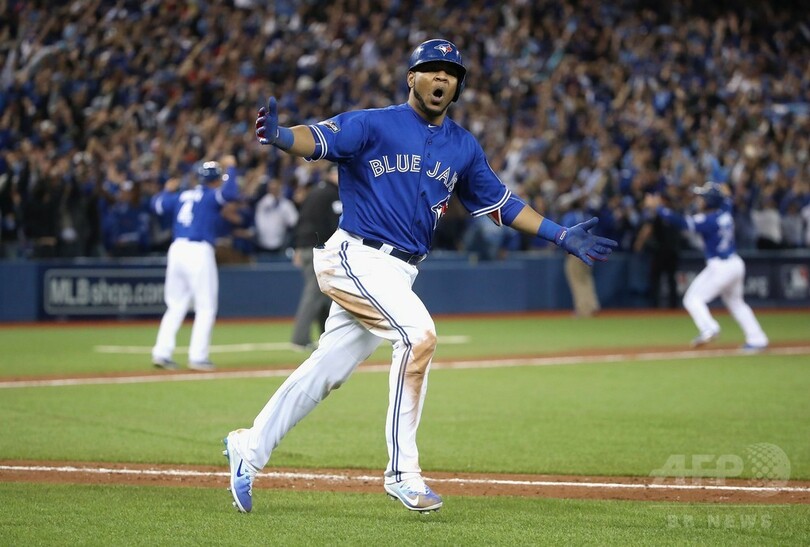【10月5日 AFP】16MLBは4日、ア・リーグのワイルドカードゲームが行われ、延長11回にエドウィン・エンカーナシオン(Edwin Encarnacion)が放った劇的なサヨナラ3点本塁打でトロント・ブルージェイズ(Toronto Blue Jays)がボルティモア・オリオールズ(Baltimore Orioles)を5-2で下し、地区シリーズ進出を決めた。