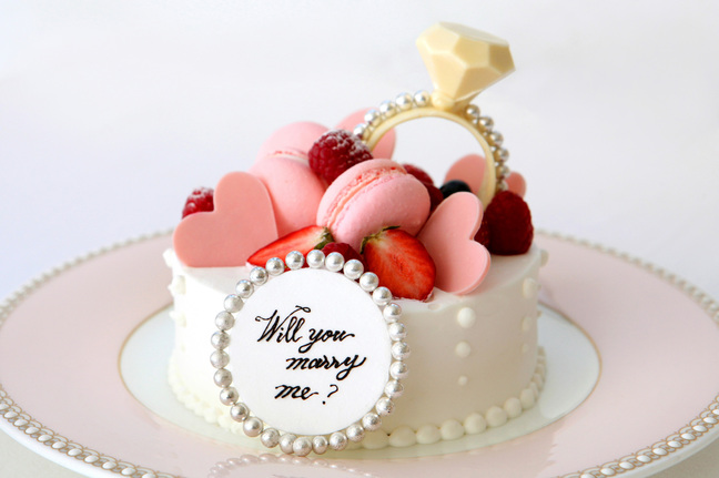 一度しかない記念日はやはり特別な形でお祝いしたいもの。「リストランテ マンジャーレ ウォーターエッジYOKOHAMA(Ristorante Mangiare Water Edge Yokohama)」による「プロポーズケーキ」は、なんとウェディング専属パティシエがプロデュースしたロマンチックな一品。ダイヤモンドリングをかたどったチョコレートに「Will you marry me?(結婚してくれる?)」のメッセージプレート付きで、女性に嬉しいサプライズ演出をバックアップしてくれる。ピンクのマカロンやハート形のチョコレートで彩られたデコレーションは食べるのがもったいないゴージャスさだ。また、メッセージプレートを変更すれば女子会での利用も可能なので、ぜひ友達同士のおしゃれなパーティーでも楽しんで。