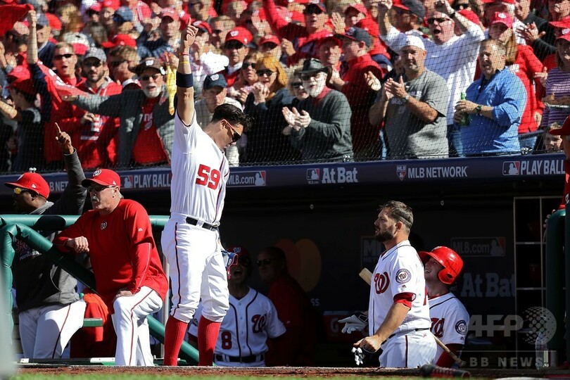 【10月10日 AFP】16MLBは9日、プレーオフのナ・リーグ地区シリーズ(5回戦制)が行われ、ワシントン・ナショナルズ(Washington Nationals)はホセ・ロバトン(Jose Lobaton)が3点本塁打を放つと、ダニエル・マーフィー(Daniel Murphy)は2打点の活躍をみせ、ロサンゼルス・ドジャース(Los Angeles Dodgers)に5-2で勝利し、対戦成績を1勝1敗のタイに戻した。