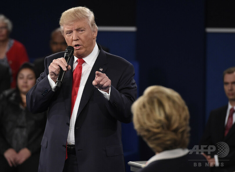 【10月10日 AFP】(更新、写真追加)米大統領選はミズーリ(Missouri)州セントルイス(St. Louis)で9日夜に第2回テレビ討論会が行われ、わいせつ発言が女性蔑視だとして激しい逆風にさらされている共和党候補ドナルド・トランプ(Donald Trump)氏は、問題の発言を「更衣室の雑談」に過ぎないと一蹴した一方、民主党候補ヒラリー・クリントン(Hillary Clinton)前国務長官の夫ビル・クリントン(Bill Clinton)元米大統領の過去の性的不品行を批判した。