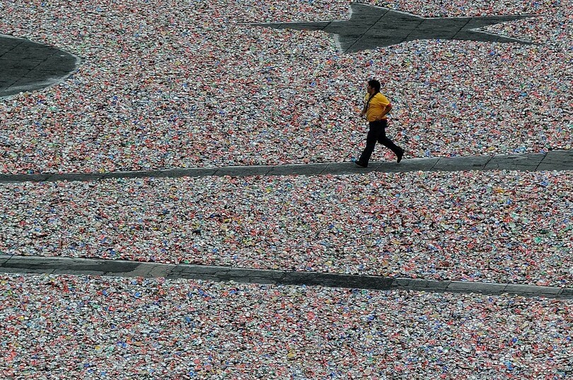 100万個のアルミ缶で「ユリの紋章」制作、メキシコ市