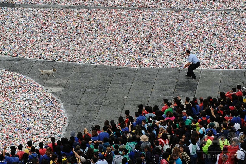 100万個のアルミ缶で「ユリの紋章」制作、メキシコ市